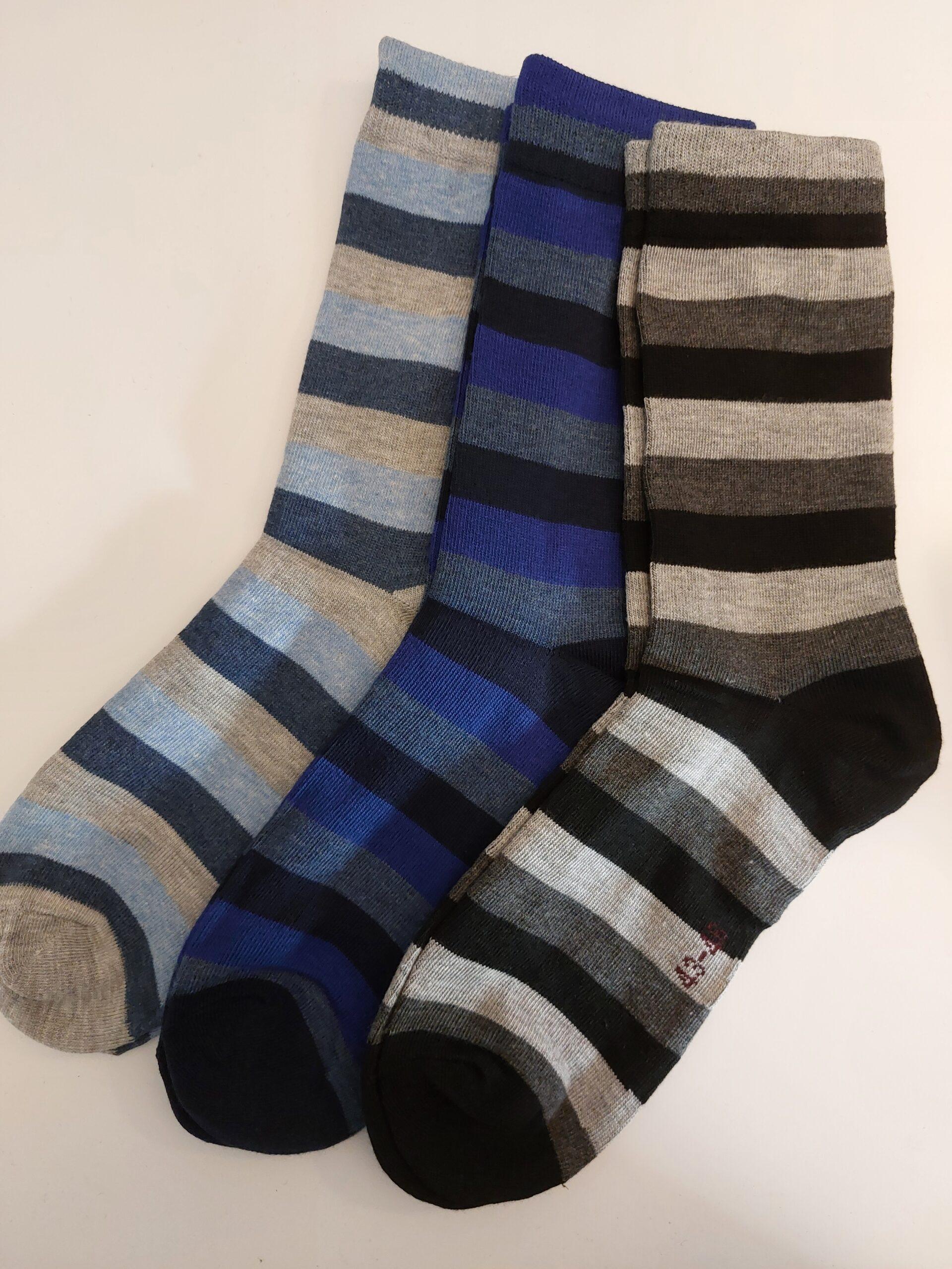 E & F Fashion Strømper – Praktisk 3-pak i Klassiske Stribet Farver
